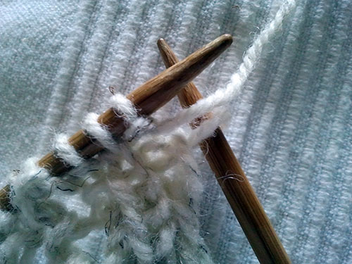 Lo que tenemos que hacer es pinchar el punto en la vuelta anterior, es decir, si es un punto del derecho, en la cadeneta de abajo, que corresponde a la vuelta anterior. Si es del revés, veremos la rayita o culebrita, y justo debajo el agujero de la cadeneta, pero siempre de la vuelta anterior.