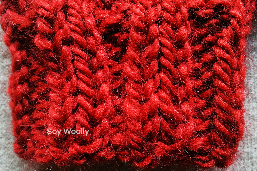 Una de las ventajas del punto elástico 2/2 es que es doble faz o reversible, por lo que no tienes que preocuparte por cómo va a verse la cara del revés del tejido. Además, es un punto tupido (sin agujeros), muy usado para prendas de chicos.