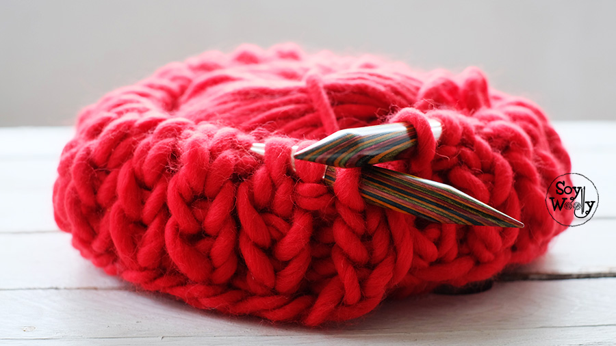 Lo ideal, si estás empezando a tejer, es que lo intentes con agujas gordas y lana gruesa, para que veas muy bien dónde introducir la aguja en la vuelta de abajo, por eso te recomiendo las agujas circulares con las que tejo: las que más me gustan son las de Knit Pro, de madera, intercambiables, modelo Symphonie: KnitPro KP20414 – Aguja de punto, 15