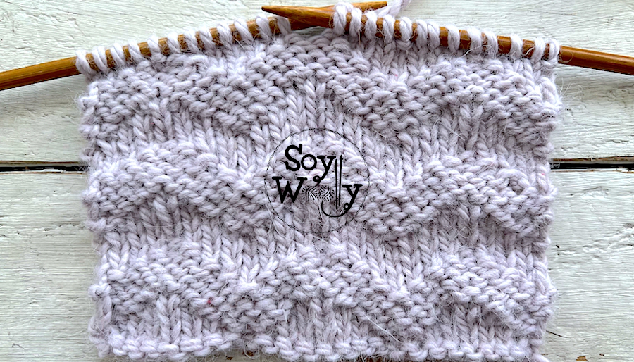Se trata de una puntada fácil de tejer; se hace combinando derecho y revés, y no necesitas cruzar puntos, aumentar, ni disminuir.